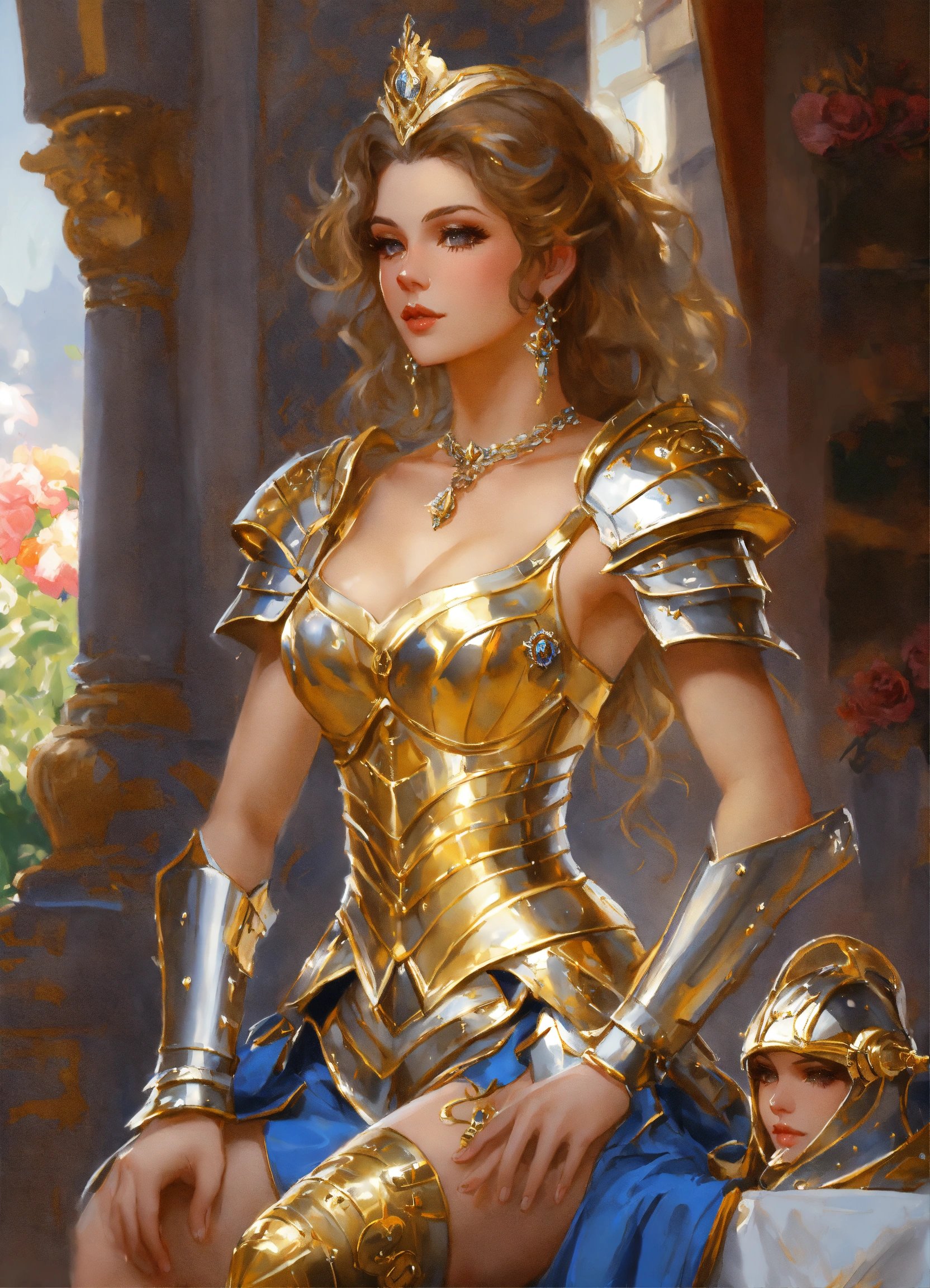 Elegant laidy in gold and silver knight armor. By Konstantin Razumov, highly detailded