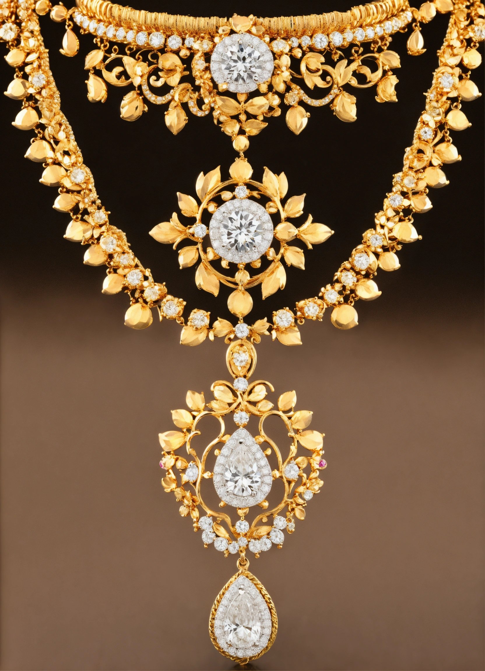 Jewellery design, vintage style, Create diamond gold necklace with matte finish in prong setting, default-theme, --product-view --ultra-quality