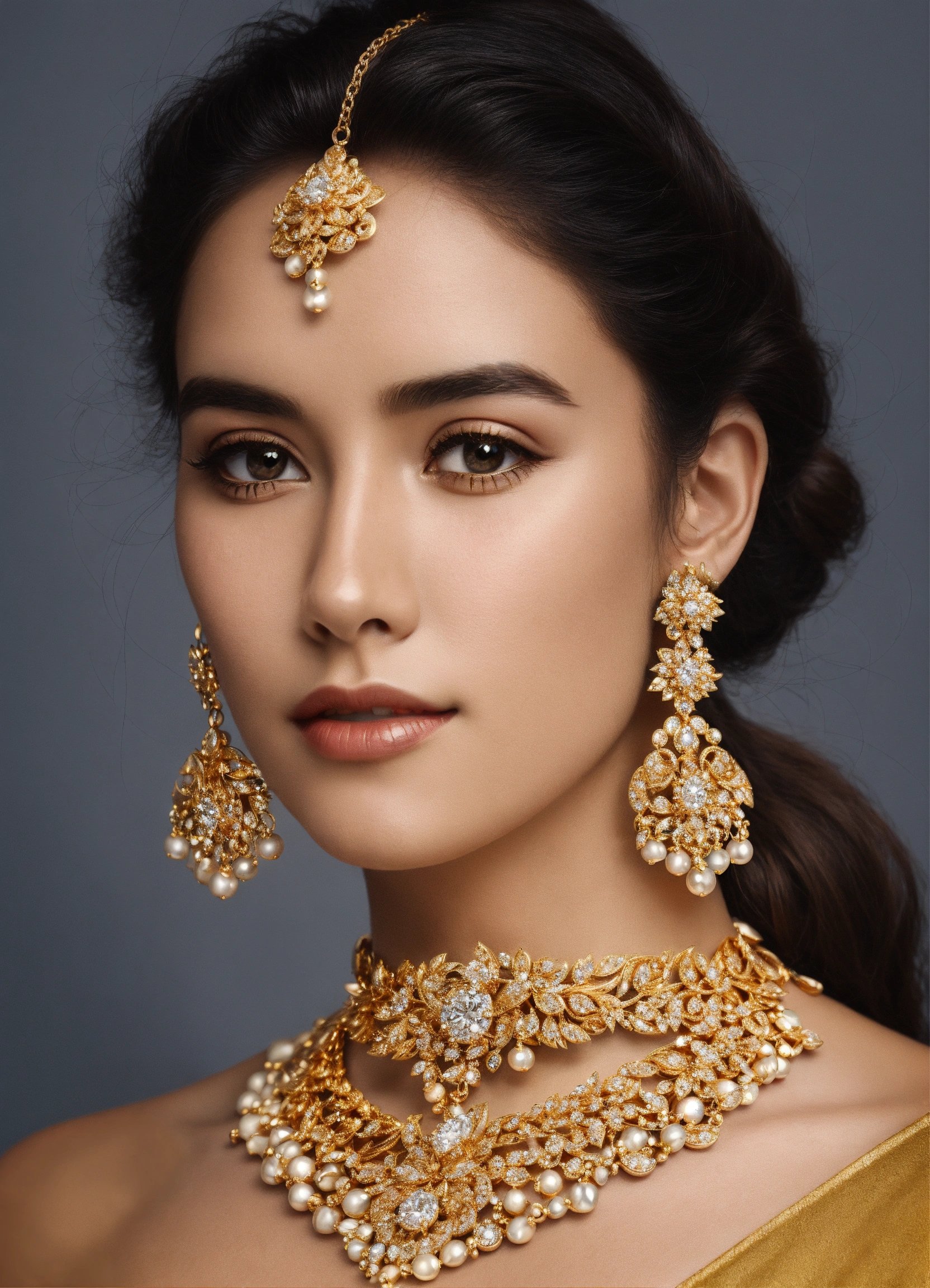 Jewellery design, vintage style, Create diamond gold necklace with matte finish in prong setting, Neptune, default-theme, --product-view --ultra-quality