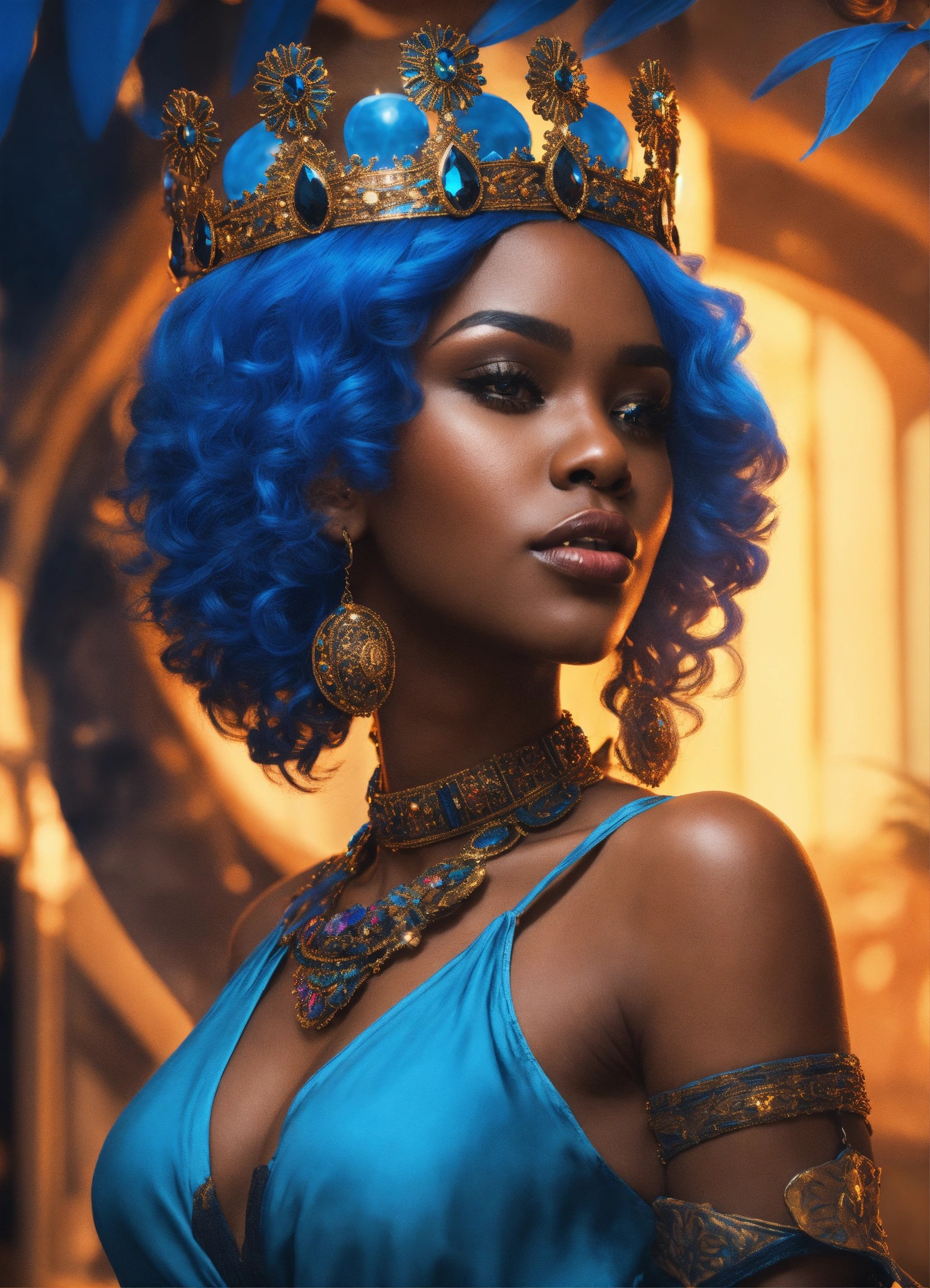 Black woman blue hair queen fantasy 4k