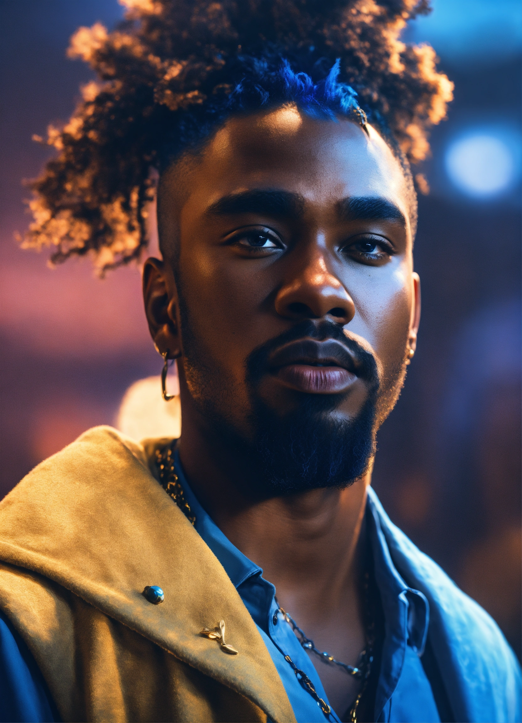 Black man blue hair fantasy 4k
